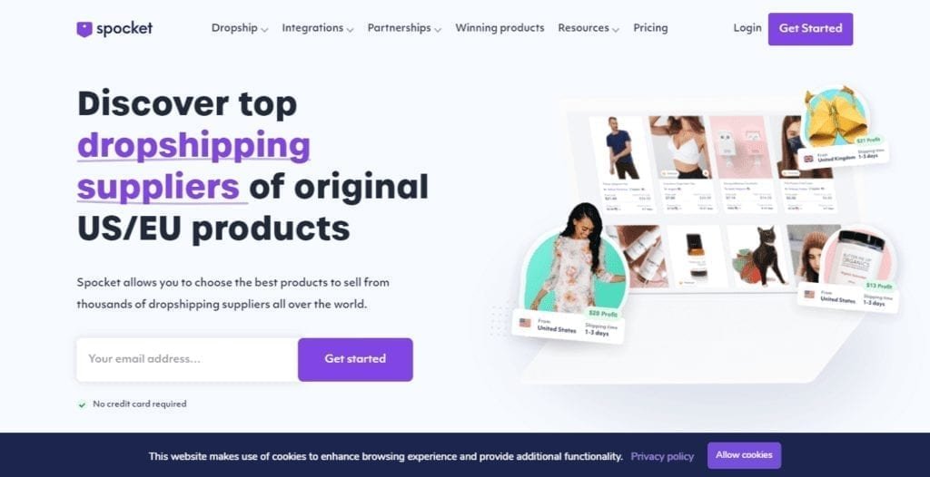 Spocket is another helpful product marketplace that allows you to specify your product wish list and find a dropshipper that offers these items.