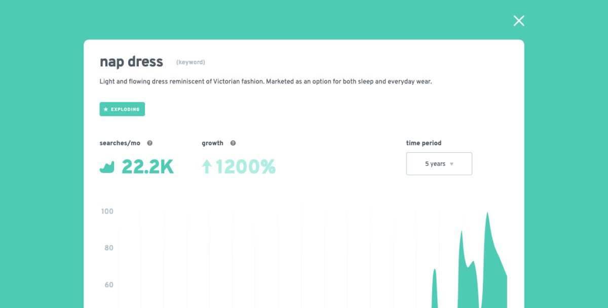 Comfort is a trend that will never go out of style. The above Exploding Topics data shows nap dresses have seen a 1200% growth over the past five years – with 22.2K monthly searches.