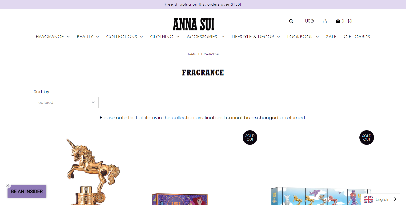 Anna Sui, a luxury fashion and fragrance brand, demonstrates how easy it is to use product collections pages as landing pages.