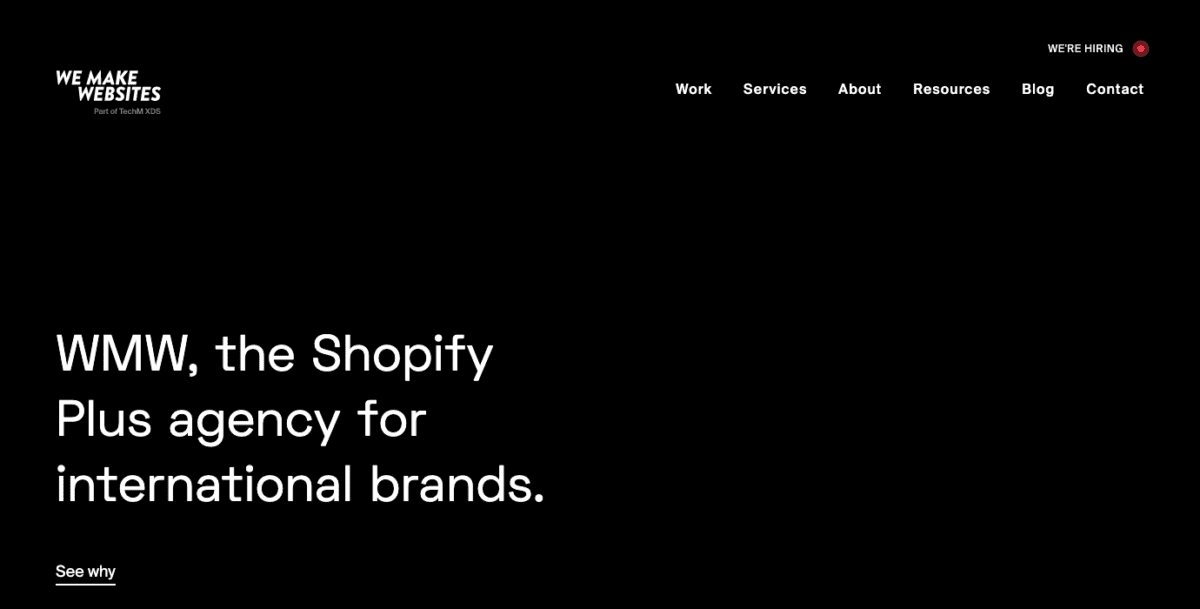We Make Websites or WMW, is a web development agency with a focus on Shopify Plus (the enterprise-level plan) for international businesses. They have over 10 years of experience working with Shopify Plus design and development.