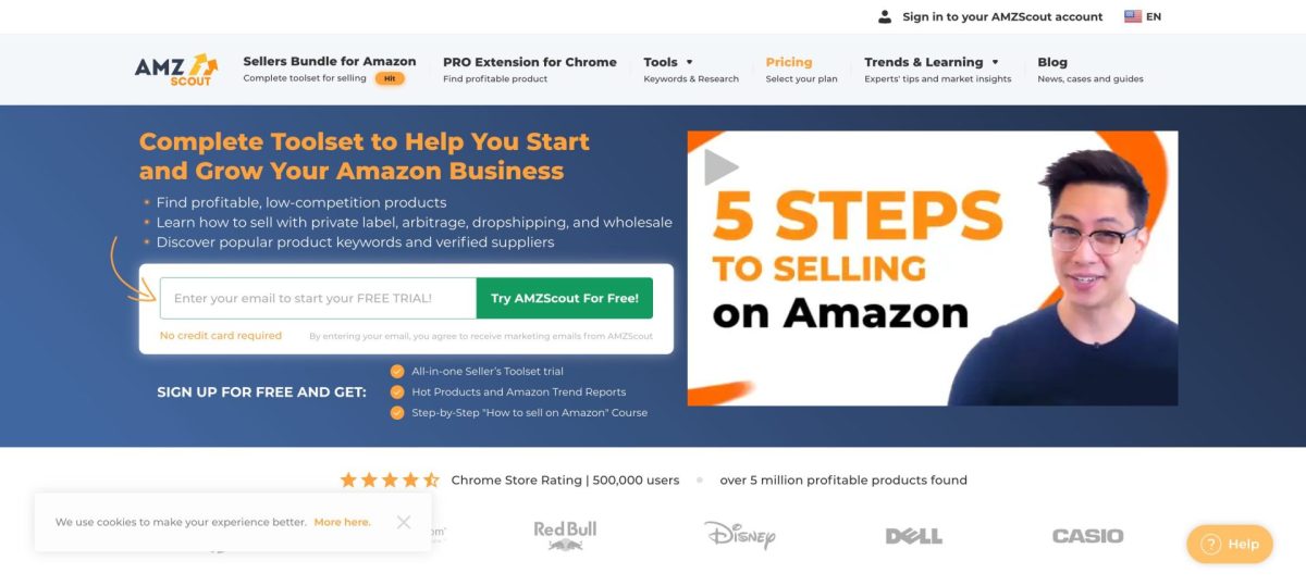 AMZScout, with its robust package of tools, gives sellers an edge in product research. It is heavily equipped with features such as a product tracker, sales estimator, keyword explorer, etc. AMZScout specializes in providing deep insights into market trends and competition.